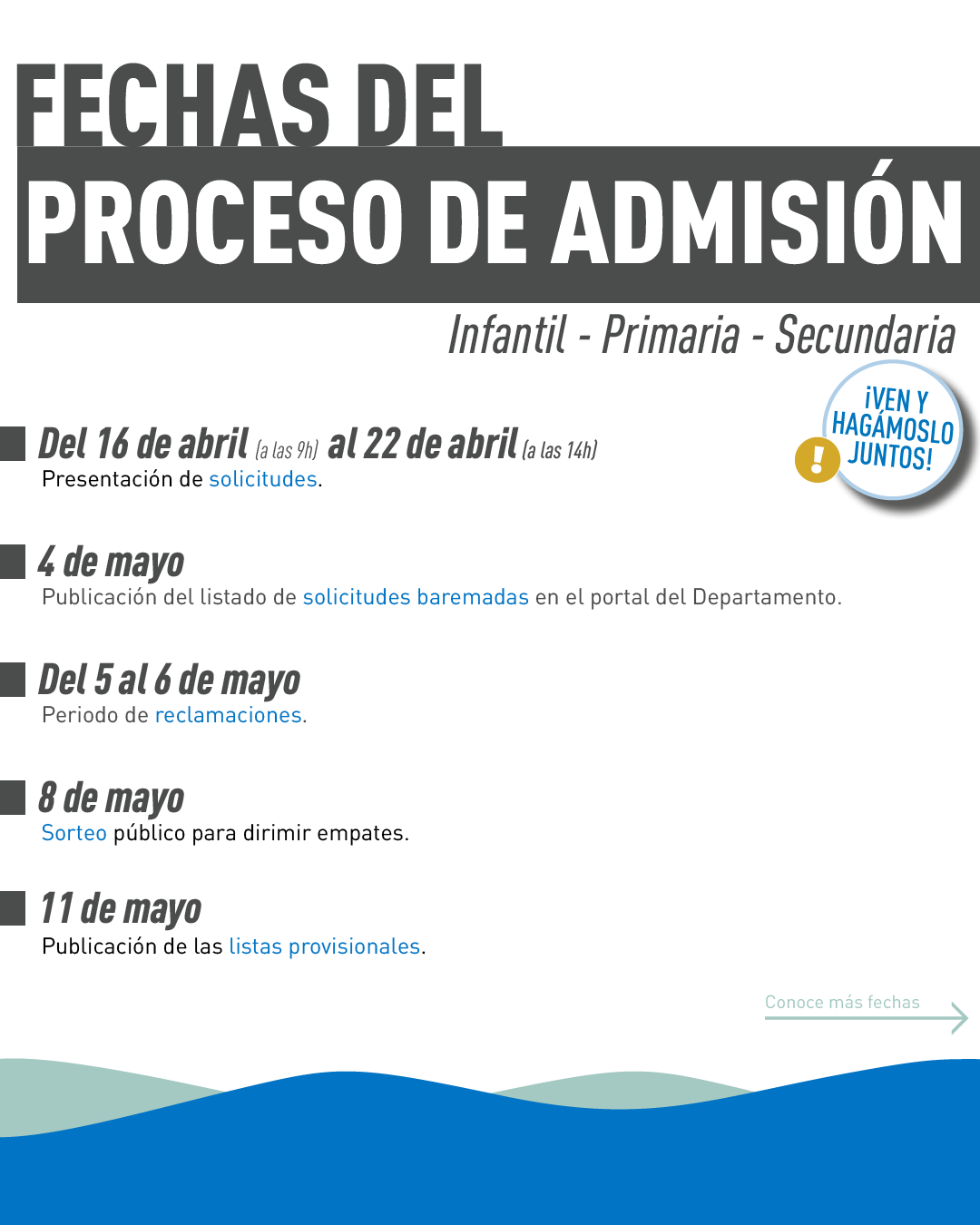Puedes consultar el proceso de admisión en las distintas etapas y descárgate los documentos para el curso 2026-27