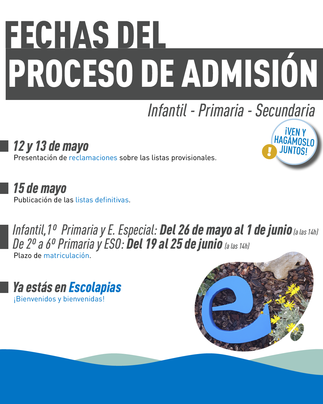 Te podemos acompañar en el proceso de admisión llamando al 976276492 o en el correo admisiones@escolapiaspompiliano.es